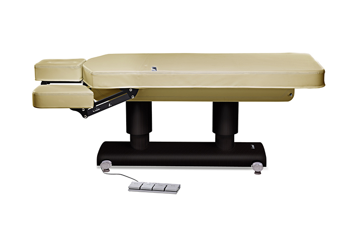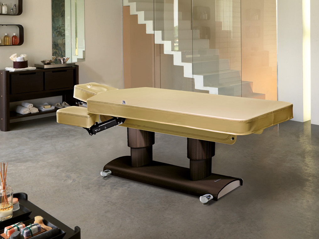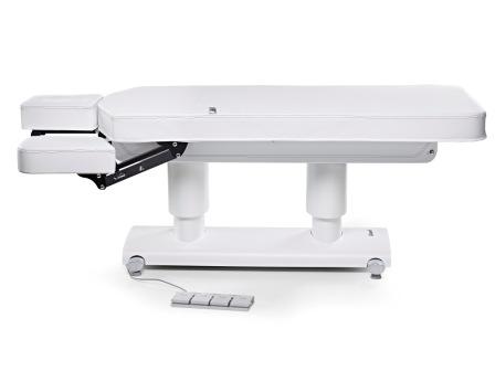 Особенностью модели является матрас с особой формой. В нем предусмотрены регулируемые подлокотники и подголовник с отверстием для лица с заглушкой. За счет этого клиент получает возможность полностью расслабиться, а массажист может без затруднений выполнять любые виды массажа. Кушетка подходит для проведения различных СПА-процедур для тела и лица.