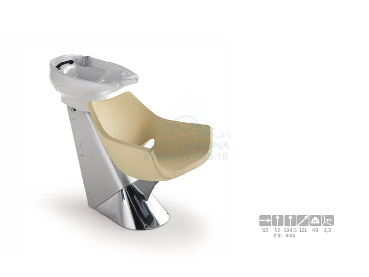 Мойка с креслом, на алюминиевом каркасе с декоративной хромированной вставкой. Мойка комплектуется глубокой керамической раковиной белого цвета с регулировкой угла наклона, комплект смесителя с хромированной лейкой душа. Мягкие элементы кресла и подлокотники обтянуты искусственной кожей высшего качества. Размер (ДхШхВ):110х62х104,5