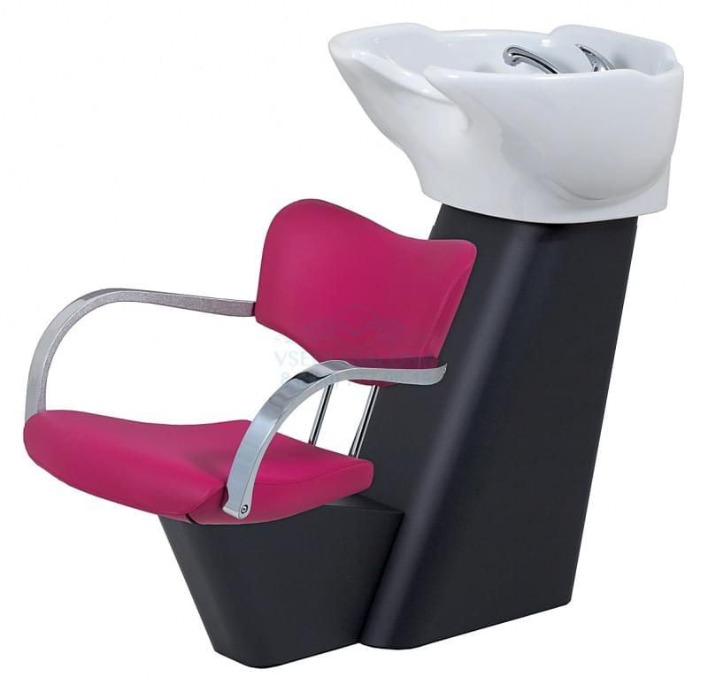 Мойка парикмахерская с креслом. Каркас мойки выполнен из металла черного или серебристого цвета. Комплектуется белой, черной или синей керамической раковиной. Кресло изготовлено из высококачественного поролона, обтянутого искусственной кожей высшего качества. Подлокотники из хромированного металла.