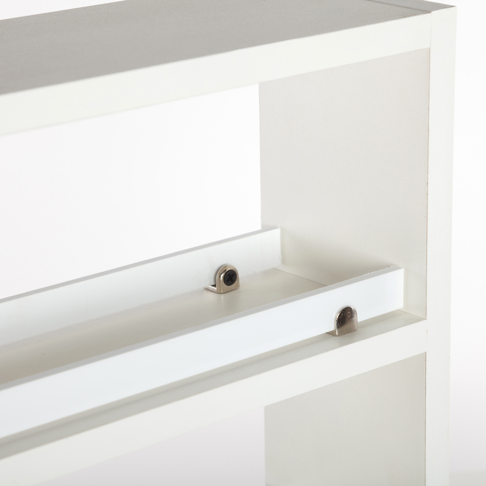 Полка представляет собой этажерку с тремя сквозными полками из ламинированного ДСП.