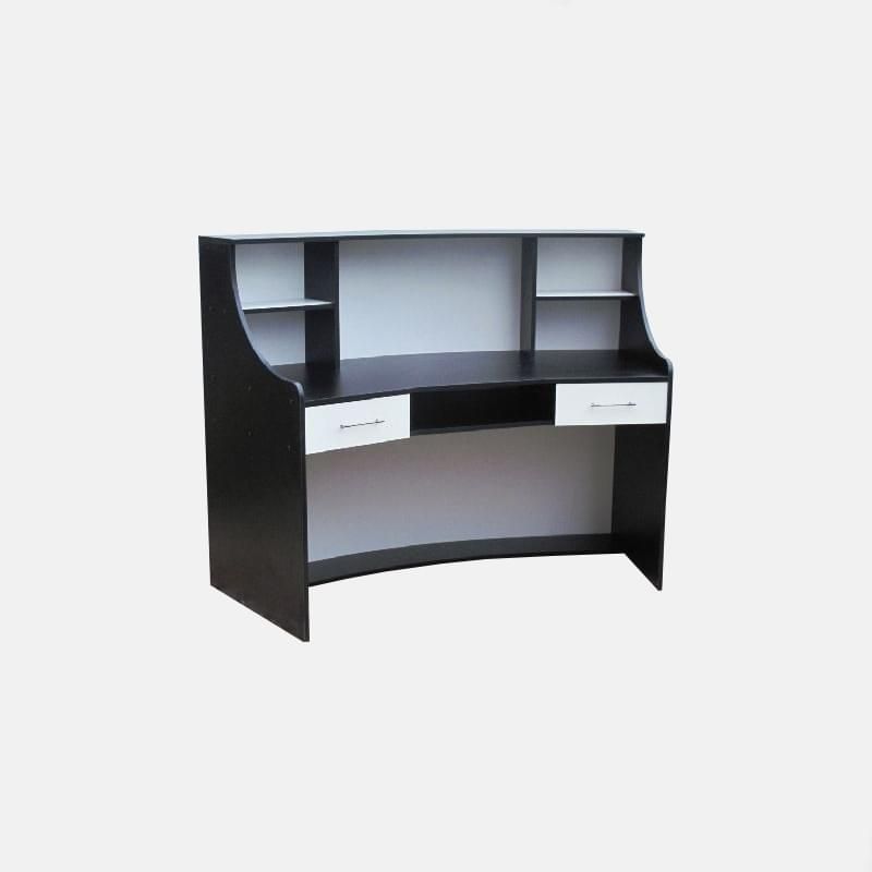 Несмотря на свое название, стойка администратора Black выполнена, в основном, в белом цвете (передняя панель) из прочного ЛДСП, что гарантирует долгий срок службы, простоту ухода. Задняя часть – тёмная, коричневая, с массой шкафов и ящиков для хранения вещей, бумаг и ведения работы администратора. За такой ресепшен приятно встречать гостей, записывать их на процедуры и консультировать.