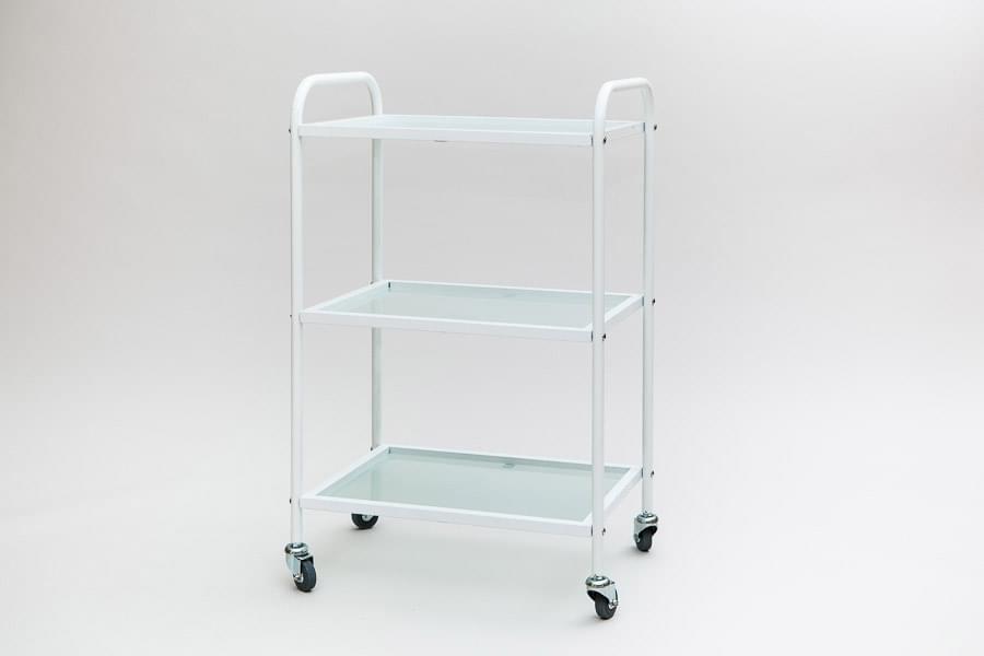 Каркас тележки изготовлен из металла, который покрыт порошковой краской белого цвета. Изделие имеет колесики из резины, которые обеспечивают плавное и бесшумное перемещение по любой поверхности. Благодаря качественным и прочным материалам, тележка косметолога SD-3030 является долговечной, устойчивой к химическим и механическим воздействиям.