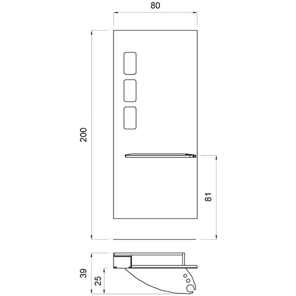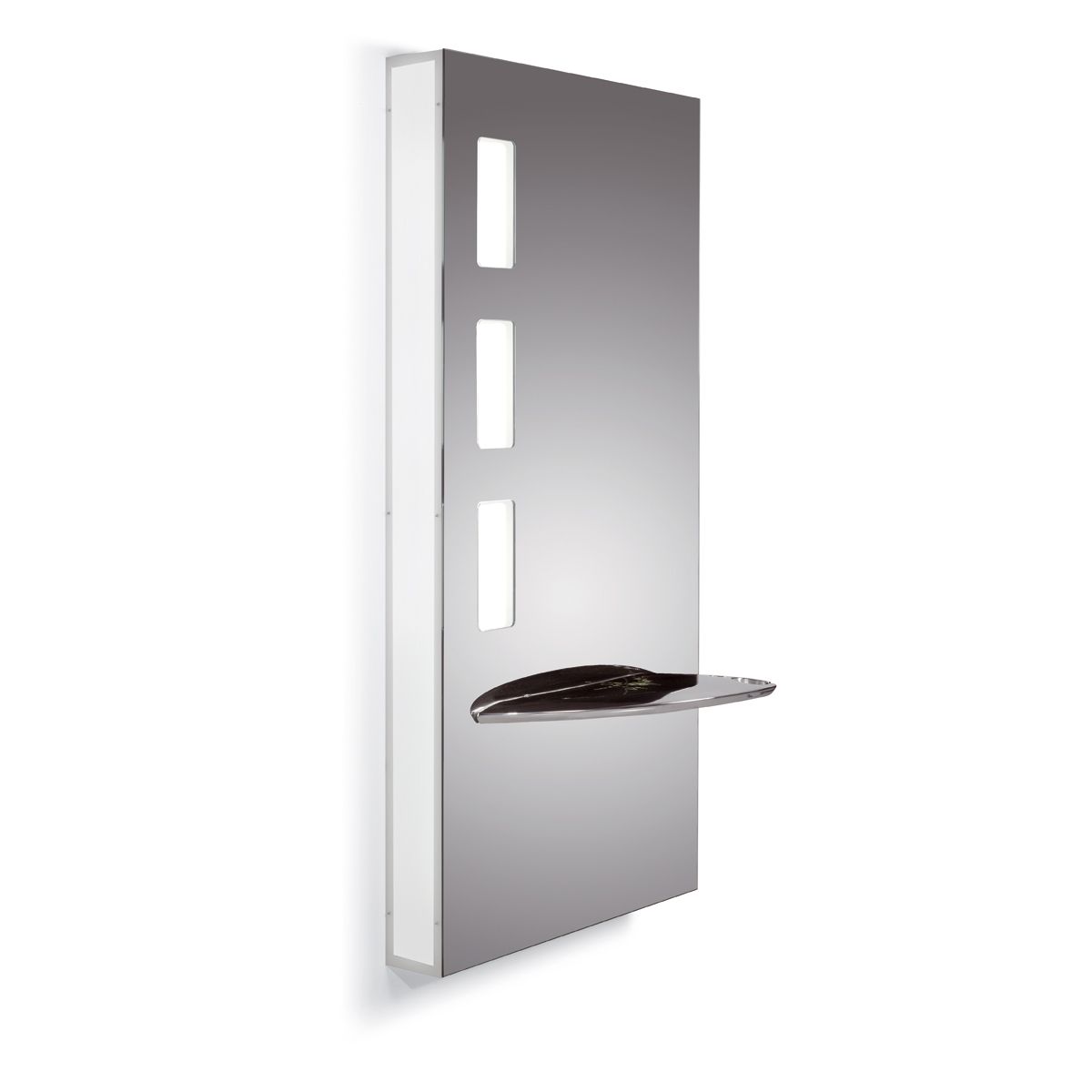 Зеркало парикмахерское "Action" - с интегрированной витриной. Зеркало оснащено подсветкой и алюминиевой столешницей оригинальной формы с отверстием для фена. Крепление к стене.