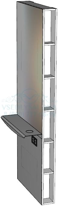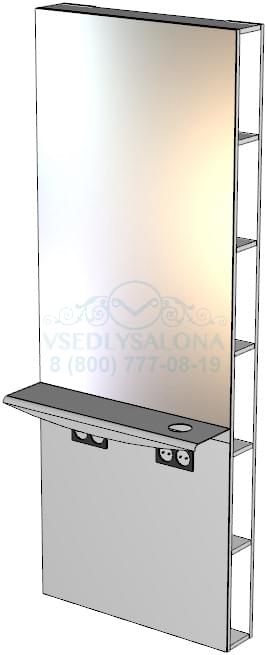 Материал и комплектация: силовой каркас из лдсп (любой цвет) столешница из шлифованной нержавеющей стали зеркало специальное держатель для фена витрина для продукции в торце зеркала