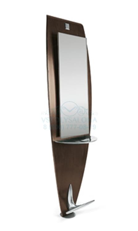 Зеркало парикмахерское, одностороннее, крепление к стене. Металлическая хромированная столешница и подставка под ноги, рама - дерево. Размер: 205х60х39